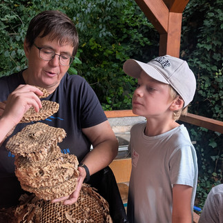 Der Projekttag stand ganz unter dem diesjährigen Motto „Gemeinsam sind wir stark – Lernen von Ameise und Co.“ Während sich die erste Gruppe kreativ betätigte und aus Eierkartons und Naturmaterialien Ameisen bastelte, konnte die zweite Gruppe Teamwork in der Küche beweisen. Gemeinsam mit Andrea Hübsch bereiteten Lea, Mary, Milena und Layla den Teig für Pizza und Brötchen vor. Gruppe Drei erfuhr währenddessen von Annett Erdmann mit jeder Menge Anschauungsmaterial spannende Fakten über Staateninsekten wie Wespen, Bienen und Ameisen. Wie sieht ein Wespennest von innen aus und woraus besteht es überhaupt? Welche Aufgaben muss eine Ameise in ihrem kurzen Leben bewältigen? Wie sieht die Welt mit Facettenaugen aus? Welcher Honig ist der leckerste und wie oft muss eine Biene für ein Gals Honig zu einer Blüte fliegen?